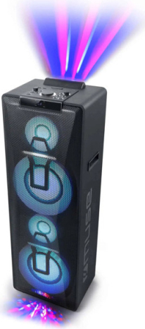 | Party Box skaļrunis, 1000 W, MUSE, M 1990 DJ. Izejas jauda: 1000 W. Funkcijas: CD atskaņotājs (CD/CD-R/RW), Bluetooth v4.2, USB MP3 atskaņošana un uzlādes ports, AUX ieeja (2× RCA + 3,5 mm), 2× mikrofona ligzdas, ģitāras ligzda. Krāsu mainoši gaismas un stroboskopa efekti. |