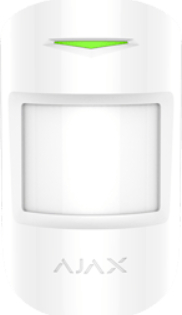 | Pet immune motion PIR detector. Ajax MotionProtect detects the first step of an intruder on the premises but ignores pets, drafts and noise from an air conditioner. Maximum performance Works up to 1,700 meters from Ajax Hub in open space or across several floors of a business center. Detects motion up to 12 meters away. Detects the first step of an intruder. Processes signals digitally. Protection from intruders and failure Uses authentication to protect against fraud. Tamper-resistant body. Response from detectors can be checked every 12-300 seconds (adjustable). Jamming detection, frequency-hopping. Uses an encrypted connection. Effortless operation Adjustable to three different sensitivity levels. Uses our SmartDetect algorithm to avoid false alarms from animals weighing less than 20kg. Eliminates false alarms from gear and electromagnetic interference using a FresnelTech optical component, made from POLY IR4 material and an Excelitas PIR sensor. Works under most conditions due to digital temperature compensation. Two-way communication with Ajax Hub allows for periodic testing and customization. Has a battery life of up to 7 years Simple professional-level installation No need to disassemble the body when installing using SmartBracket mounts. The quality of the connection and detection area can be tested remotely. Connects to Ajax Hub with a single click. Can be used with third-party security systems using the uartBridge and Bridge Plus modules. Technical specification Detector type: Wireless Use: Indoor Movement detection distance: Up to 12 m (39.4 ft) Sensitivity: 3 levels adjustable (low, medium, high) Detection angle: 88.5° horizontal / 80° vertical Installation height suggested: 2.4 m (7.9 ft) Pet ignoring option: Weight up to 20 kg (44 lb), height up to 50 cm (19.7 in) Tamper protection: Available Radio signal power: 20 mW Communication protocol: Jeweller (868.0-868.6 MHz) Maximum distance between detector and central unit: Up to 1,700 m (6,552 ft) (in open area) Power supply: CR123A battery Power supply voltage: 3 V Battery life: Up to 7 years Operating temperature range: From 0°C (+32°F) to +50°C (+122°F) Operating humidity: Up to 80% Dimensions: 110x65x50 mm (4.33x2.55x1.96 in) Components Motion detector CR123A battery (pre-installed) Installation set Manual |