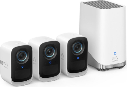 Anker eufyCam 3C novērošanas sistēma ar trim kamerām. Sistēmā ietilpst trīs ar akumulatoru darbināmas 4K kameras un HomeBase 3 mājas stacija. Kamerām ir arī LED apgaismojums un divvirzienu audio. HomeBase 3 mājas stacija atbalsta viedās pašmācības BionicMind kustību noteikšanas tehnoloģiju, un kustību noteikšanas ieraksti tiek veikti lokāli mājas stacijas iebūvētajā atmiņā (atbalsta arī atsevišķi instalētu cieto disku). Sistēmas iestatīšana ir vienkārša. Komplektā ir iekļauta HomeBase 3 mājas bāze, kas sākotnēji tiek pievienota modemam vai bezvadu maršrutētājam, izmantojot tīkla kabeli (nepieciešams interneta savienojums). Pēc mājas bāzes uzstādīšanas kameras tiek bezvadu režīmā savienotas pārī ar mājas bāzi. Optimālos apstākļos attālums starp mājas bāzi un atsevišķu kameru var būt desmitiem metru. Sistēmas instalēšana un darbība tiek veikta, izmantojot mobilo lietotni eufy Security (Android, iOS). Eufycam 3C kameras izšķirtspēja ir uzlabota, tagad sasniedzot 4K, 3840 x 2160 ar 135° diagonālo redzeslauku. Kameras iebūvētais akumulators optimālos apstākļos ar vienu uzlādi darbojas līdz sešiem mēnešiem. Citas kameras funkcijas ietver LED gaismu, kas nodrošina krāsainu attēlu pat vājā apgaismojumā/tumsā (kamerai ir arī tradicionālā melnbaltā IR nakts redzamības funkcija). Kameras gaismu var arī iestatīt tā, lai tā mirgotu, kad tiek uztverta kustība. Turklāt kamerai ir divvirzienu audio, un kameras skaļrunis nepieciešamības gadījumā darbojas arī kā sirēna (maksimums 100 dB). Eufycam 3C ieraksta, pamatojoties uz kustības noteikšanu. Komplektā iekļautajai mājas stacijai ir iebūvēta 16 GB EMMC atmiņa kameru ierakstiem. Iekšējā atmiņā var saglabāt aptuveni 45 dienu ierakstus no četrām 4K eufycam kamerām (kopā līdz 500 sekundēm ieraksta dienā). Tomēr mājas stacijai ir arī 2,5 collu SATA pieslēgvieta atsevišķi instalētam HDD/SSD cietajam diskam (maksimums 16 TB). Tāpēc lokālā atmiņa labākajā gadījumā var būt vairāki terabaiti. Visi lokālie ieraksti tiek šifrēti, izmantojot 128 bitu AES šifrēšanu. Ar S380 mājas staciju var savienot pārī kopumā 16 kameras un papildus tām vēl 34 sensorus. Atjauninātā mājas stacija spēj darboties kā vārteja gandrīz visām eufy un eufycam ierīcēm (vēlāk nepieciešams mājas stacijas atjauninājums). Tagad pat tās Eufy ierīces, kas iepriekš darbojās neatkarīgi un glabāja datus savā iebūvētajā atmiņā, var darbināt, izmantojot vienu mājas staciju. Jauna funkcija ir viedā BionicMind kustību noteikšana. Sistēma spēj atpazīt cilvēkus, sejas, mājdzīvniekus un transportlīdzekļus. Sistēma arī pašmācās, runājot par sejām. Sistēma tiek iemācīta, piemēram, atpazīt ģimenes locekļu sejas, un atpazīšanas precizitāte laika gaitā sāk uzlaboties. Izmantojot lietojumprogrammu, ir viegli izvēlēties, vai izmantot viedo noteikšanu un ko vēlaties, lai sistēma atpazītu. Papildus viedajai kustību noteikšanai kamerām ir pasīvs infrasarkanais sensors (PIR). Lietotājs var arī definēt aktīvās noteikšanas zonas (aktivitātes zonas) attēlā. Kamera nekavējoties nosūta paziņojumu, kad tiek noteikta kustība vai skaņa, un sāk ierakstīšanu. Kameras darbojas ar akumulatoru, un iebūvētā akumulatora ietilpība ir 10 000 mAh (akumulators nav nomaināms). Kameras akumulatoru var uzlādēt, piemēram, tieši caur mājas stacijas USB savienotāju vai arī izmantot atsevišķu USB barošanas bloku (5 V, 2 A). Eufycam 3C atbalsta Amazon Alexa un Google Assistant virtuālos asistentus. S380 mājas stacija ir saderīga ar iepriekšējām Eufycam kamerām. Turpmākie atjauninājumi pievienos atbalstu Eufy produktiem, kurus iepriekš nevarēja savienot pārī ar mājas staciju. Saderīgie produkti un provizorisks atjauninājumu grafiks ir atrodams šeit.(Ārējais pakalpojums) (Atveras jaunā cilnē) Kameras akumulatora darbības laiku būtiski ietekmē darba temperatūra, bezvadu tīkla stiprums, kameras lietošana un kustību detektoru skaits. HomeBase S380 mājas stacijas funkcijas: