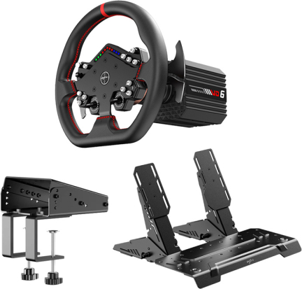 PXN VD6 DBT kit - VD6 base + WDS R2 steering wheel + PD HM brake/gas pedals + Z9 clampPXN VD6 DBT is a complete set created for gamers who want to feel like behind the wheel of a real racing car. The package includes the PXN VD6 steering wheel base with Direct Drive, the WDS R2 steering wheel, a set of PD HM pedals and the Z9 mounting clamp. The whole thing runs on PCs running Windows 7, 8, 10 and 11, and is connected via a USB cable. The headset offers a powerful driving experience, accurate reproduction of movements and extensive customization options for the individual player.