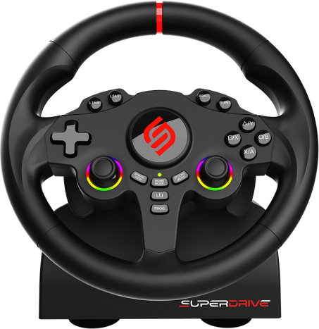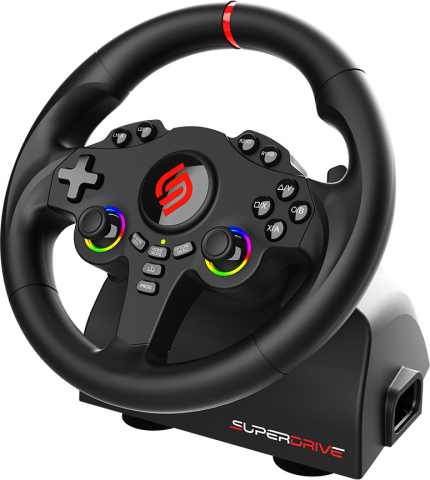 | Rotācijas leņķis: 180 grādi Stūres diametrs: 22 cm Stūre un pedāļi Divkāršs vibrācijas motors - 3 jutības līmeņi Daudzpusīgi saderīgi divkārši LED indikatori |