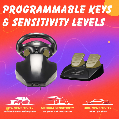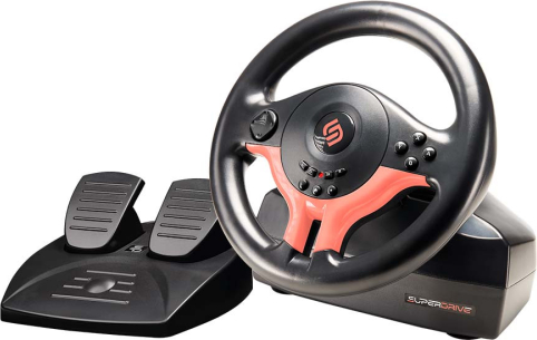 Stūre arkādes spēlēm, atklāj pirmās sacīkšu simulācijas sajūtas. Funkcijas • Vairāku saderīgu 3 spieķu vadu stūre • Rotācijas leņķis: 180 grādi. • Stūres diametrs: 22 cm. • Pedāļi un stūre. • Dubultās vibrācijas motors • Savietojamība: PS4, PS3, XBOX ONE, personālais dators, SWITCH
