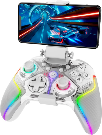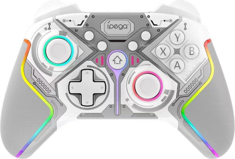 Bluetooth RGB spēļu kontrolieris iPega 9666BH (balts) ir daudzplatformu bezvadu pults risinājums, kas paredzēts ērtai spēlēšanai Android, iOS, PS3, PS4, Windows PC un Nintendo Switch ierīcēs. Savienojums tiek nodrošināts pa Bluetooth, un kontrolierim ir pielāgojama RGB apgaismojuma sistēma — tas piešķir personisku stilu un dinamiku spēļu sesijās. Ergonomiska forma, precīzi analogie sviru kursori, jutīgi trigeri un skaidri izvietotas pogas padara kontrolieri piemērotu dažādu žanru spēlēm — sacīkstēm, šāvējiem, piedzīvojumu un sporta spēlēm. Iebūvētā vibrācija palielina iesaisti, bet stabils Bluetooth savienojums nodrošina ērtu bezvadu spēli. Ilgstoša akumulatora darbība ļauj spēlēt stundām ilgi. Galvenās īpašības: