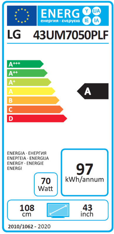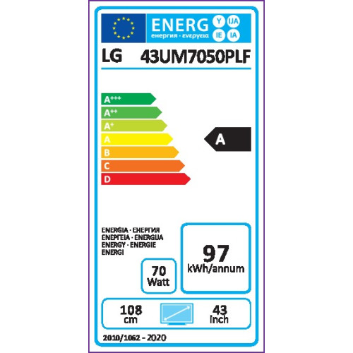 Ekrāna diagonāle43" Collas Ekrāna Tips (TV)Ultra HD Energo klaseA Produkta krāsaMelna RažotājsLG