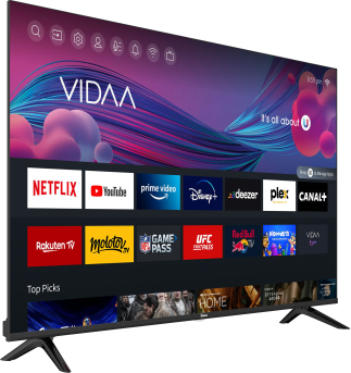 | Izmērs: 140cm (55") Smart TV: VIDAA OS Ekrāna krāsas: 1,07 miljardi Kadru nomaiņas ātrums: 60 Hz Izšķirtspēja: 3840 x 2160 (4K UHD) LED tips: DLED Spilgtums: 220 cd/m2 Skata leņķis: 178°(H)/178°(V) ATV sistēma: PAL DTV sistēma: DVB-T2/C, DVB-S, DVB-S2, DVB-C Skaļruņa tips: 2X8W, 8W/8Ω Sistēmas valoda: lietuviešu, latviešu, angļu, franču, vācu, holandiešu, spāņu, krievu Austiņu ligzda: Jā Digitālā audio izeja: optiskā Ieejas termināli: 2xRF (RF/Sat), 3xHDMI, 2xUSB, CVBS, CI slots, LAN (RJ45) EPG: Jā Veikala režīms: Jā HDR: Jā 265: Jā HDMI CEC: Jā HbbTV: Jā HDCP: Jā OTA (tiešsaistes atjauninājumi): Jā Bluetooth: Jā WiFi: 2.4/5G Iepriekš instalētās lietojumprogrammas: Netflix, YouTube, Prime Video, Go3 utt. Lietotņu tirgus: Jā Tālvadības pults: Bluetooth/IS Kalpošanas laiks: 30 000 h Strāvas ievade: AC 100-240V, 50/60Hz Jaudas patēriņš: Maks. 120W Energoefektivitātes klase: F Televizors ar statīvu: 1244 (P) × 243 (D) × 781 (A) TV bez statīva: 1244 (P) × 76 (D) × 722 (A) Svars: 11,85 kg VESA stiprinājums: 200 x 200 mm Iepakojuma saturs: TV, tālvadības pults, baterijas (AAA), statīvs, lietošanas instrukcija