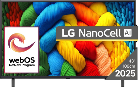 Summary LG NanoCell 43NANO80A3B. Display diagonal: 109.2 cm (43"), Display resolution: 3840 x 2160 pixels, HD type: 4K Ultra HD, Screen shape: Flat, LED backlighting type: Direct-LED. Smart TV. Native aspect ratio: 16:9. Digital signal format system: DVB-C, DVB-S, DVB-S2, DVB-T2. Wi-Fi, Ethernet LAN. Product colour: Black