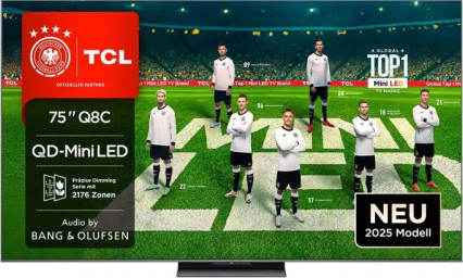 Summary TCL 75Q8C. Display diagonal: 190.5 cm (75"), Display resolution: 3840 x 2160 pixels, HD type: 4K Ultra HD, Display technology: LCD, Screen shape: Flat, LED backlighting type: QD MiniLED. Smart TV. Display brightness: 4500 cd/m², Native aspect ratio: 16:9. Wi-Fi. Product colour: Black