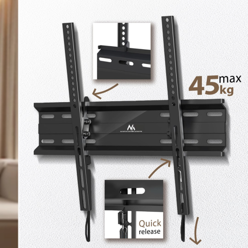 Maclean MC-748A TV or Monitor Mount, TV Wall Holder, Handle, max VESA 400x400, 32-70", 45kg, Black