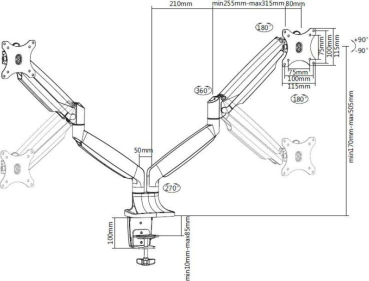 Regulējams augstums no galda virsmas līdz VESA plāksnes centram: 170 - 505mm