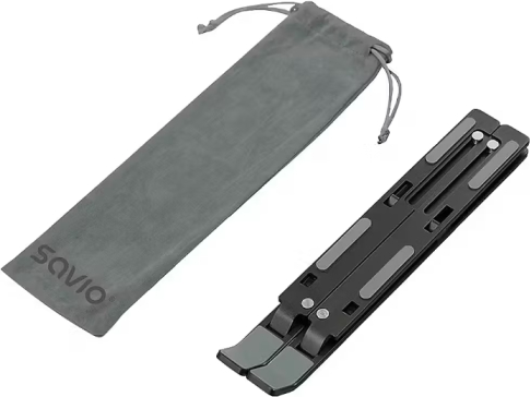 savio portable stand ir salokāma portatīvā statīva alumīnija konstrukcija notebook datora un planšetdatora turēšanai. nodrošina ērtu skata leņķi un ergonomisku darbu. anti‑slip silikona pēdas aizsargā ierīci un novērš slīdēšanu. tehniskie parametri: