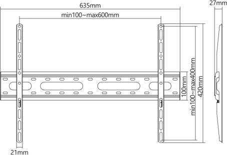 | Stiprinājuma tips: Fiksēts Minimālais VESA: 200x200 Maksimālais VESA: 600x400 Maksimālā slodze (kg): 45 Minimālais ekrāna izmērs: 37 collas / 94 cm Maksimālais ekrāna izmērs: 80'' / 203 cm Minimālais attālums no sienas (mm): 27 Maksimālais attālums no sienas (mm): 27 Vertikālais slīpums: Nē Griešanās: Nē Līmeņa regulēšana: Nē Līmenis: Jā Izliektiem ekrāniem: Jā Kabeļu pārvadība: Nē Noņemama VESA plāksne: Jā Uzstādīšana: siena Krāsa: melna Materiāls: Tērauds Virsmas apdare: pulvera pārklājums Izmēri (mm): 635x420x27 Piezīme: Uzstādot, pievērsiet uzmanību VESA un atsevišķu televizoru ražotāju izmantoto skrūvju tipiem! |