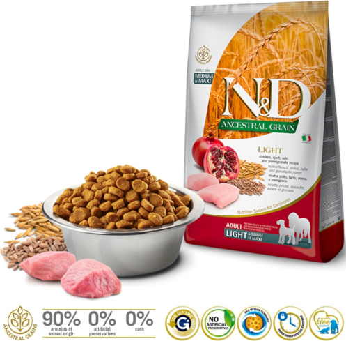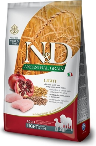 FARMINA N&D ANCESTRAL GRAIN DOG LIGHT - CHICKEN. SPELT.OATS AND POMEGRANATE ADULT MEDIUM & MAXI 12kg
