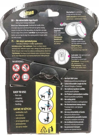 Hilton HILTON SMART DOG TAPE M BIAŁO-CZARNA SMYCZ AUTOMATYCZNA 4M DLA PSA DO 20KG