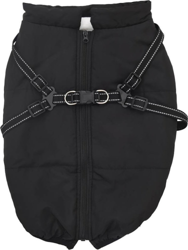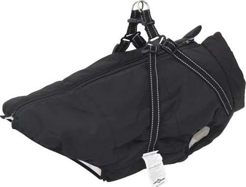 vidaXL Płaszcz dla psa z szelkami, wodoodporny, czarny, 4XL