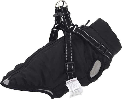 vidaXL vidaXL Płaszcz dla psa z szelkami, wodoodporny, czarny, M