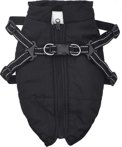 vidaXL vidaXL Płaszcz dla psa z szelkami, wodoodporny, czarny, S