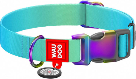 Nylon collar with QR code for dog Waudog gradient size M (blue).The WAUDOG nylon collar is a reliable choice for owners of medium-sized dogs. Made of durable recycled rPET material, the collar provides comfortable wear and resistance to daily wear and tear. Thanks to its adjustment from 28 to 40 cm, it can be perfectly adjusted to your dog's neck, ensuring comfort even during long walks.