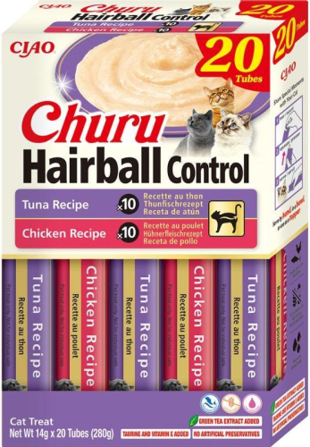 INABA Churu Hairball control Tuna and chicken recipe - cat treats - 20x14g