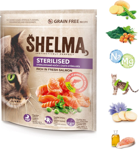 SHELMA Sterilised Rich in salmon - dry cat food - 750g