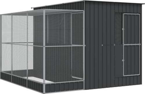 vidaXL Woliera z przedłużeniem, srebrna, 290x303x216 cm, stalowa