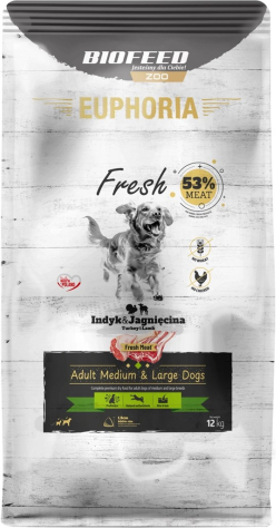 BIOFEED Euphoria Fresh Meat Adult Medium & Large Indyk i Jagnięcina 12kg
