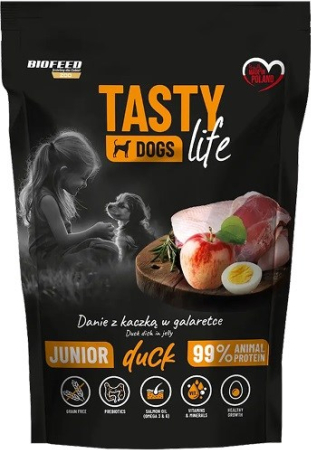 BIOFEED Tasty dog life junior kaczka 90% saszetka 500g