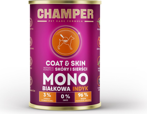 CHAMPER Coat & Skin Monoprotein Turkey - wet dog food - 400g