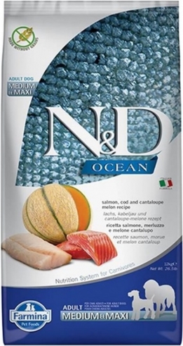 FARMINA N&D Ocean Dog Salmon, Cod, Cantaloupe, Melon Adult Medium&Maxi - dry dog food - 12 kg