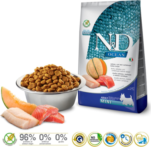 FARMINA N&D Ocean Dog Salmon, Cod, Cantaloupe, Melon Adult Mini - dry dog food - 2.5 kg