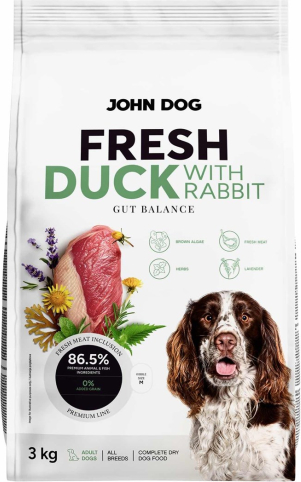 John Dog ADULT FRESH DUCK WITH RABBIT Karma sucha dla psa 3kg