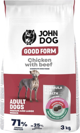 John Dog GOOD FORM Ś/D RASY kurczak z wołowiną Karma sucha dla psa 3kg