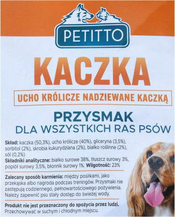 PETITTO Rabbit ear stuffed with duck - dog treat - 500 g