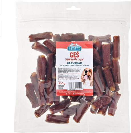 PETITTO Rurki ryżowe z gęsią przysmak dla psa 500g