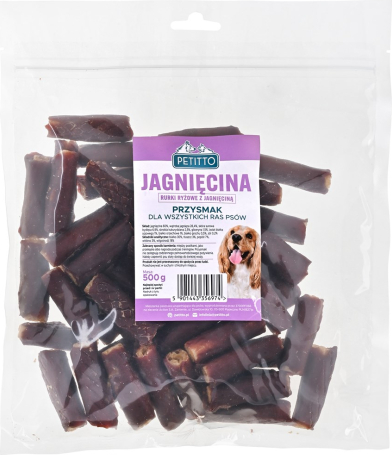 PETITTO Rurki ryżowe z jagnięciną dla psa 500g