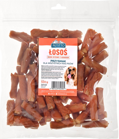 PETITTO Rurki ryżowe z łososiem dla psa 500g