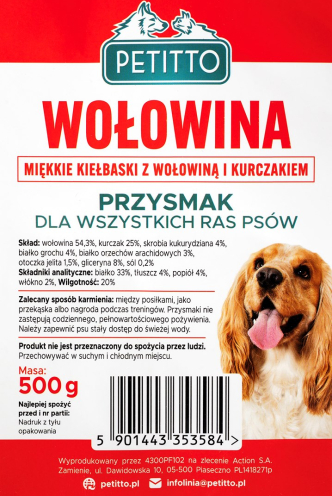 PETITTO Soft beef sausages - dog treat - 500g