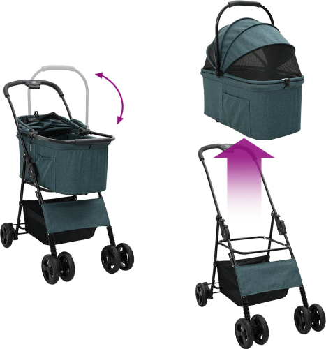 vidaXL Składany wózek dla zwierząt Z regulacją Zielony 81 x 47 x 99 cm